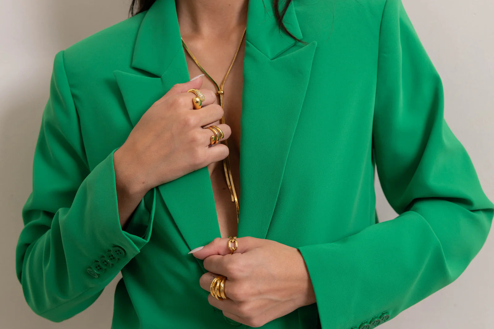 The Snake Chain Lariat is a stylish and versatile accessory featuring an adjustable bead, perfect for creating a personalized look. Show off your unique style for any occasion.