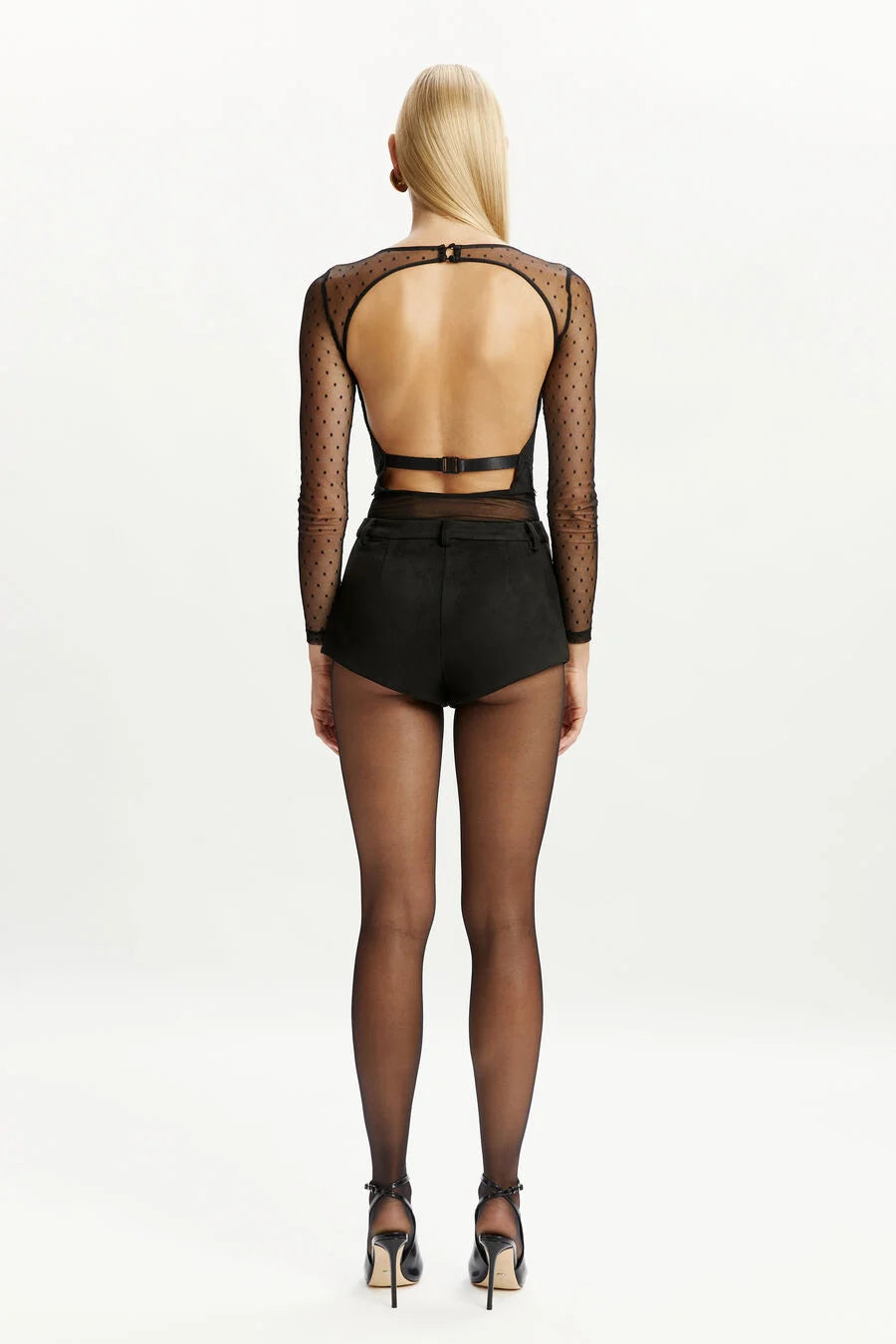 The good skirt. The Jayla Vegan Suede Midi Short delivers all the wanted drama in fashioned vegan leather. Featuring a high rise with a waistband, side pockets and back darts, this modern take midi drapes fluidly with its flounce hem.