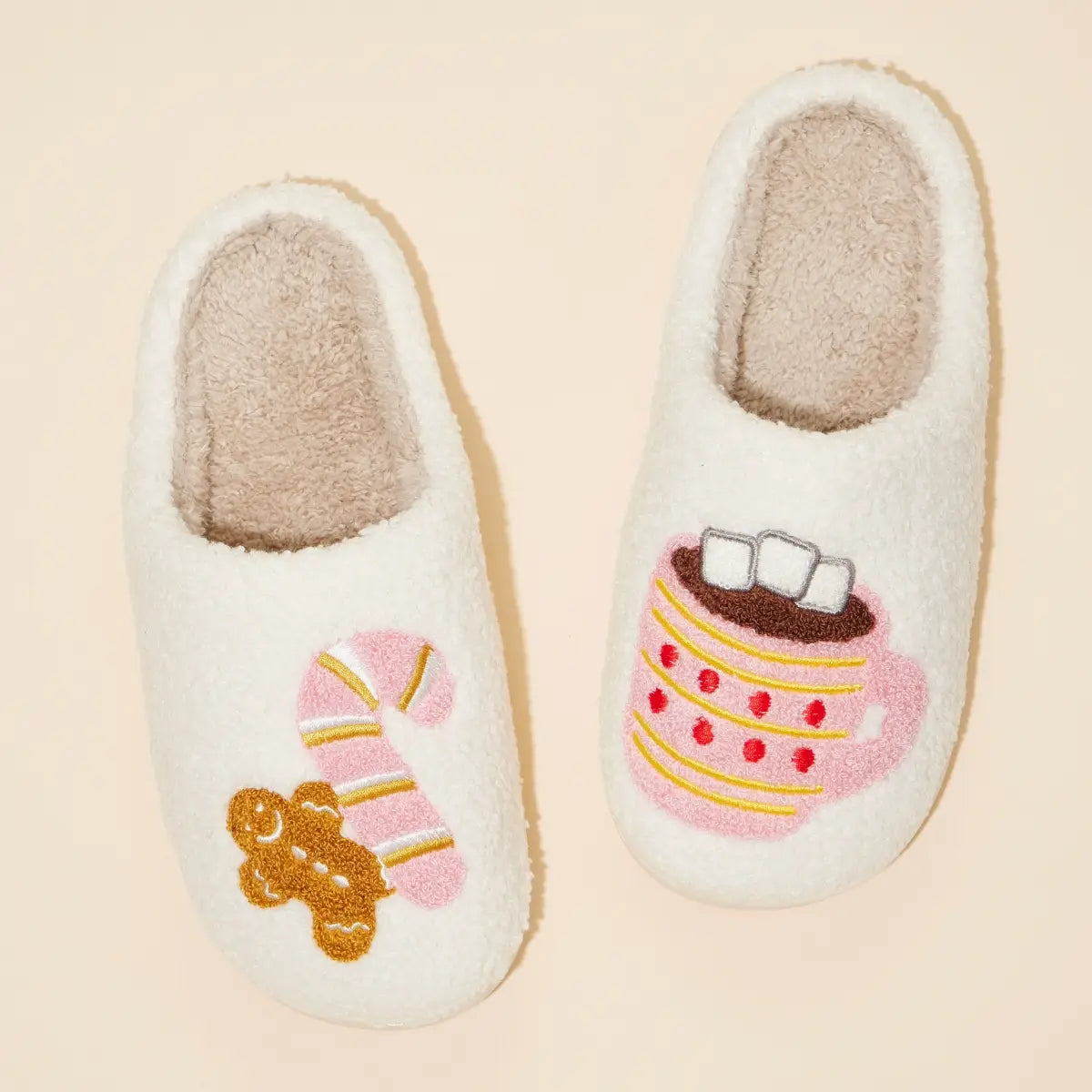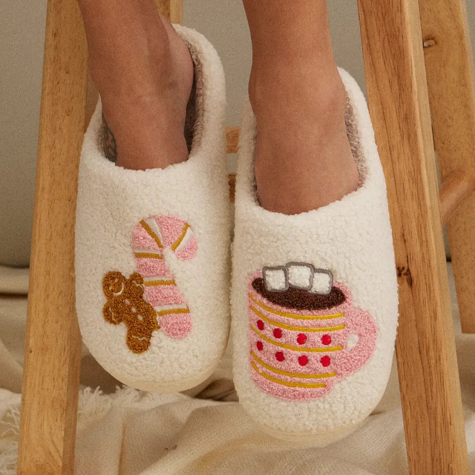 Wrap your feet in cozy comfort with these adorable Gingerbread Man & Hot Chocolate slippers. Perfect for curling up by the fire, these slippers will keep your feet warm and toasty, while adding a touch of whimsy to your loungewear. A must-have for any holiday season.